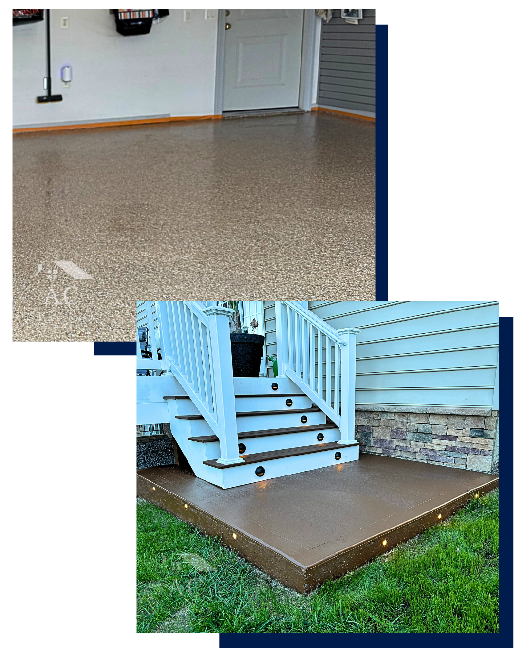 Upgrade your garage floor, patio, or walkway with a beautiful, long-lasting finish. Our high-performance coatings resist stains, wear, and weather—available in a range of colors and styles.